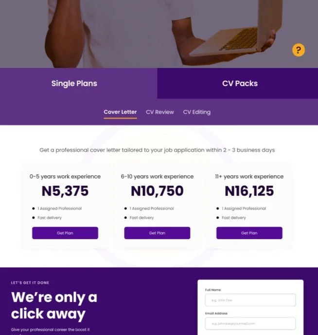 New services page - CV category